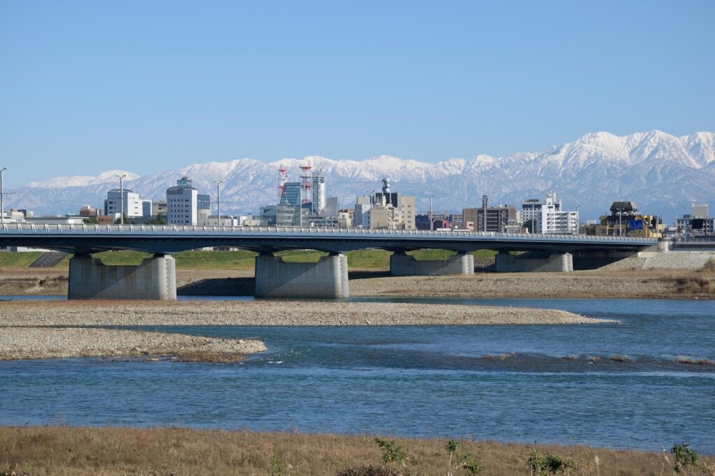 橋を検討するにあたり、旧橋の特徴である「①富山市街地越しの立山連峰への眺望の良さ」、および「②丁寧に設計された構造物としての魅力」を継承するデザインを模索しました。