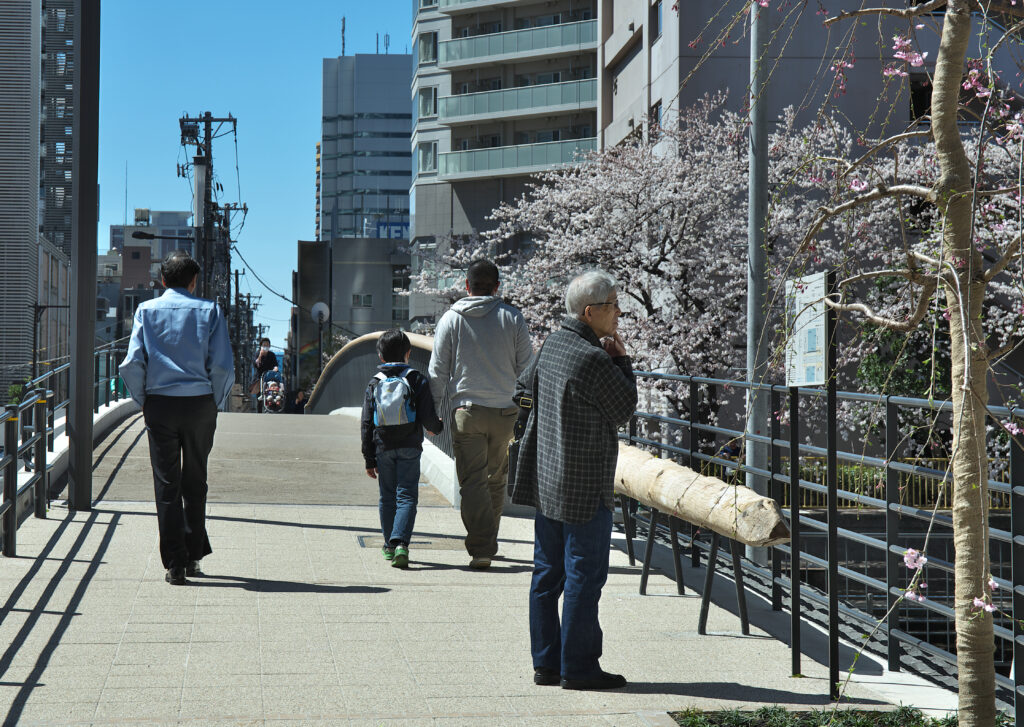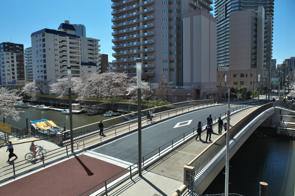 西仲橋は、東京都中央区の勝どき地区と月島地区を結ぶ西仲橋通りと月島川が交差する場所に設けられた橋で、2014年3月に供用されました。西仲橋周辺には昔の面影を残す路地や月島川沿いの桜並木、明治時代の石積護岸など、歴史を感じさせる風景が残っています。昭和30年代に作られた旧橋の木杭や石積を活用することで、地域の歴史を継承し、水辺の魅力を引き立てる橋を実現しました。2017年土木学会デザイン賞優秀賞を受賞いたしました。